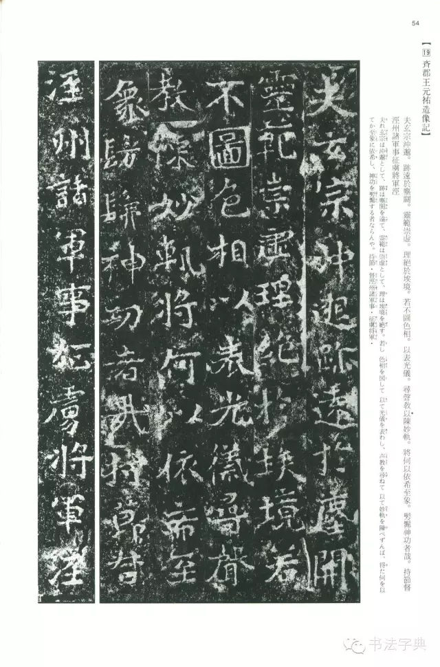 《元右造像记》全称《齐郡王元佑造像记》。熙平二(517)年七月刻。古阳洞南壁。正书,14行一行16字。末为年款2行9字。古阳洞南壁的刻石完好,而北壁泐损较甚。【原文】刺史、齐郡王祐,体荫宸仪,天纵淑茂,达成实之通途,识真假之高韵,精善恶二门,明生灭之一理,资福有由,归道无碍,于是依云山之逸状,即林水之仙区,启神像于青山,镂禅形于玄石,缔庆想于幽津,嘉应于冥运,乃作铭曰:茫茫玄极,眇眇幽宗,灵风潜被,神化冥通,舟舆为本,旷济为功,德由世重,道以入鸿,超观净境,遐绝尘(),图形泉石,构至云松,()()()(),()()三空,福田有庆,嘉应无穷。熙平三年七月二十日造。