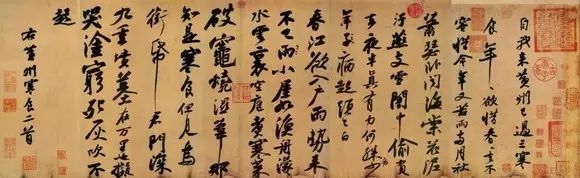 《寒食帖》又名《黄州寒食诗帖》或《黄州寒食帖》。是苏轼撰诗并书,墨迹素笺本,横34.2厘米,纵18.9厘米,行书十七行,129字,现藏台北故宫博物院,那时苏轼因宋朝最大的文字狱,被贬黄州第三年的寒食节作了二首五言诗:“自我来黄州,已过三寒食。年年欲惜春,春去不容惜。今年又苦雨,两月秋萧瑟。卧闻海棠花,泥污燕支雪。暗中偷负去,夜半真有力,何殊病少年,病起须已白。”;“春江欲入户,雨势来不已。小屋如渔舟,蒙蒙水云里。空庖煮寒菜,破灶烧湿苇。那知是寒食,但见乌衔纸。君门深九重,坟墓在万里。也拟哭途穷,死灰吹不起。”此帖是苏轼行书的代表作。这是一首遣兴的诗作,是苏轼被贬黄州第三年的寒食节所发的 人生之叹。诗写得苍凉多情,表达了苏轼此时惆怅孤独的心情。此诗的书法也正是在这种心情和境况下,有感 而出的。通篇书法起伏跌宕,光彩照人,气势奔放,而无荒率之笔。《寒食诗帖》在书法史上影响很大, 被称为“天下第三行书”,也是苏轼书法作品中的上乘。正如黄庭坚在此诗后所跋:“此书兼颜鲁公,杨少师, 李西台笔意,试使东坡复为之,未必及此。元丰三年(1080)二月,苏轼四十五岁,因宋朝最大的文字狱“乌台诗案”受新党排斥,贬谪黄州(今湖北黄冈)团练副使,在精神上感到寂寞,郁郁不得志,生活上穷愁潦倒,第三年四月,也就是宋神宗元丰五年(公元1082年)作此两首寒食诗,书写此卷的时间大约在翌年,或元丰七年离开黄州以后。元符三年(1100)是卷收藏者蜀州张氏取之邀黄庭坚观赏,并书一则题跋,与原迹可谓互为辉映。《寒食帖》是苏轼行书的代表作。这是一首遣兴的诗作,是苏轼被贬黄州第三年的寒食节所发的人生之叹。诗写得苍凉多情,表达了苏轼此时惆怅孤独的心情。此诗的书法也正是在这种心情和境况下,有感而出的。通篇书法起伏跌宕,光彩照人,气势奔放,而无荒率之笔。《黄州寒食诗帖》在书法史上影响很大,被称为“天下第三行书”,也是苏轼书法作品中的上乘。