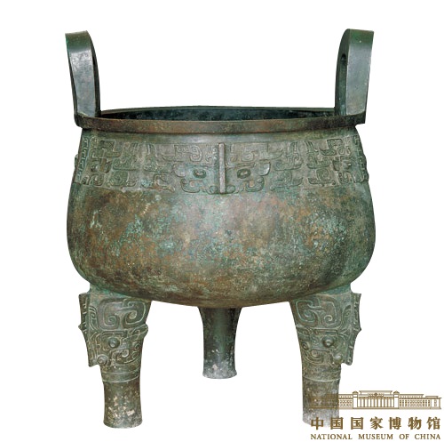 器厚立耳,折沿,敛口,腹部横向宽大,壁斜外张、下垂,近足外底处曲率较小,下承三蹄足。器以云雷纹为地,颈部饰带状饕餮纹,足上部饰浮雕式饕餮纹,下部饰两周凸弦纹,是西周早期大型、中型鼎的典型式样,雄伟凝重。